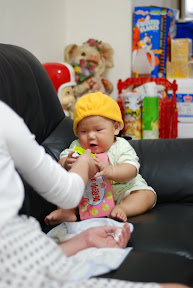 趁著這次薔蜜颱風帶來的假期,我們帶著棟棟一起回板橋囉~ 再過三天他就滿五個月了,真的好快說! 現在的他 以經會已以阿阿的發出聲音,對人的互動都會給予回應,外婆說這是他最討人喜歡的地方,除了吐口水之外, 還有對任何顯眼的東西他都想嘗試想要用他的手去觸碰,最後當然就是送到他的嘴巴裡囉~ 最可怕的是他的雙腿,媽媽說他都合不攏說~ 因為太肥的關係~ 這也是讓他體重不到五個月就將近快十公斤的原因之一吧~ 棟棟還有個優點就是個性溫和, 肚子餓的時候,他只會用呻吟的方式告訴大家他想要喝ㄋㄟㄋㄟ了,很少看到他生氣然後發出嘶吼的聲音, 最多就是哀嚎幾聲,還有他起床的時候第一眼看到你就會對你微笑唷~ 覺得他是很愛笑的小孩, 看到陌生人都喜歡對他笑, 不管誰對他笑他都會笑著來回應~ 之前去逛街進到電梯裡,他就抓住某位媽媽的手,我推了他的頭一下,他就對大家笑了~ 結果惹得大家都笑了起來, 好口愛的葉旻棟,希望他以後能夠成為天的開心果、大家的催化劑~ 9月 30, 2008 取得連結 Facebook X Pinterest 以電子郵件傳送 其他應用程式 媽媽給小棟棟吃檸檬, 酸溜溜的樣子~ 我眼裡只有小泡芙~為了拿到小泡芙,我願意全力以赴! 弟弟在嗎?快點出來跟我一起玩唷~ 傳說中的金華火腿~ 太陽好大唷~ 好險我有帶太陽眼鏡~ 這個造型怎麼樣啊? 哇哇哇~ 誰把我的小泡芙搶走了~ 咦~這是什麼東西!! 為什麼我老是躺著跟你們母女倆逛街?? 留言